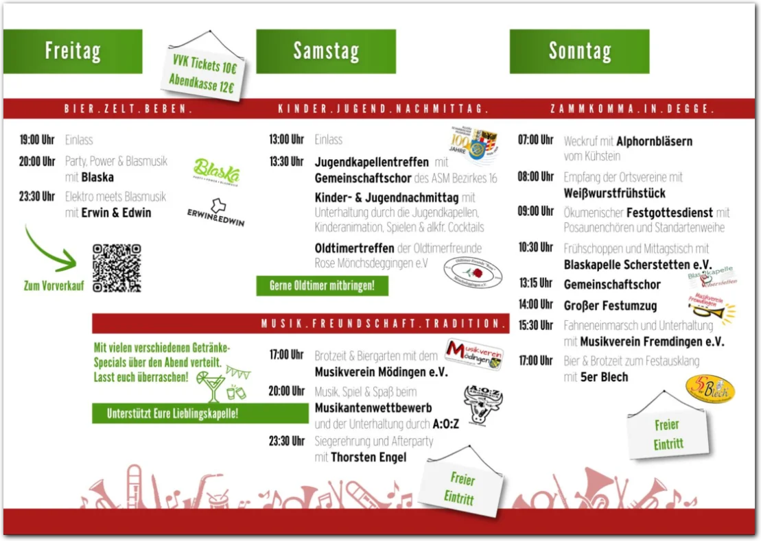 Bezirksmusikfest vom 11. bis 13. September in Mönchsdeggingen